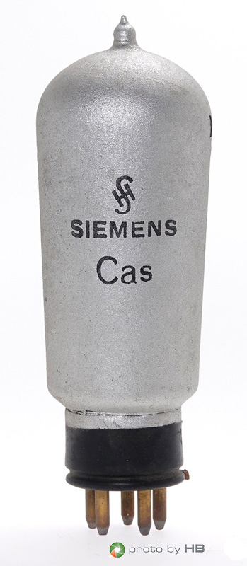 Endtriode Variante der Ca mit Außenmetallisierung. Heizungsdaten: 3,65 V und 1,1 A; direkte Heizung Anodenstrom: 18 mA (Danke Heiko B.), ohne gelbe Banderole. Fertigung Berlin. |