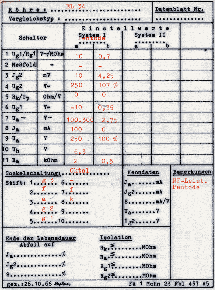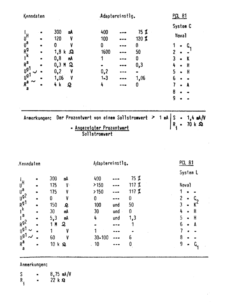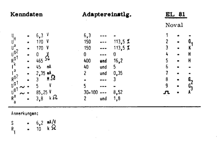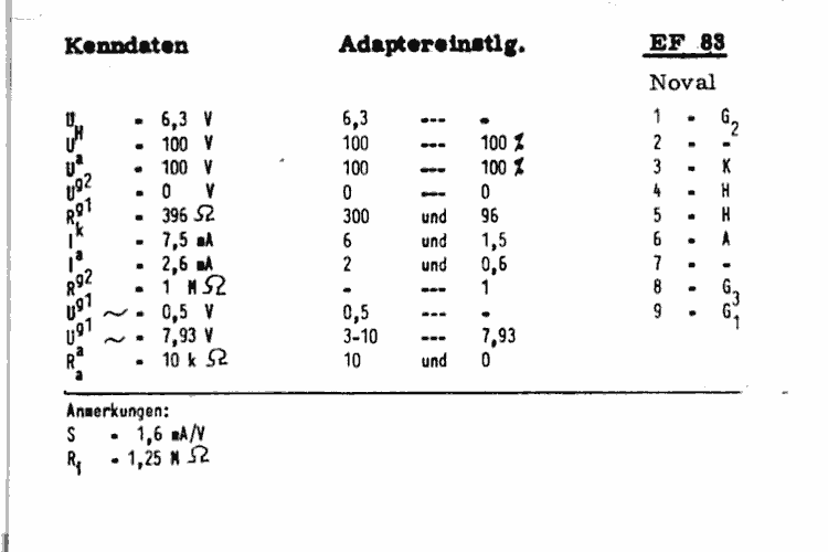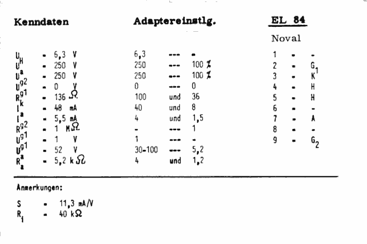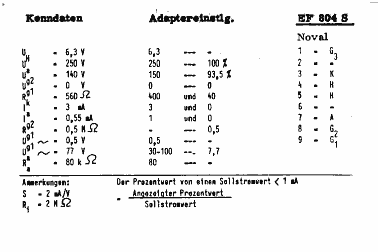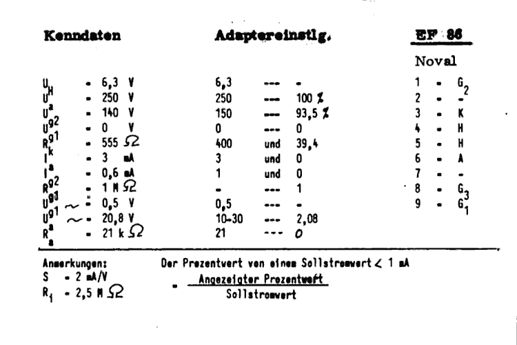 Natürlich können weitere Röhren auch ohne Einstellblätter gemessen werden. Dazu werden die Röhrendaten benötigt und die Einstellungen nach der Bedienungsanleitung (Pdf-Datei, 5317 kB) vorgenommen.