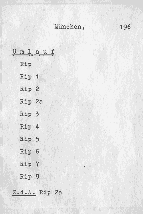 | Interessant ist diese Verteilerliste, die sich in beiden kleinen grünen Ordnern befindet. Das Rip 2a war das transportable Gerät in einer Holzkiste. Es war als Austauschgerät gedacht, falls ein anderes Universaladapter zur Reparatur musste.