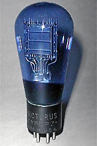 Arcturus PZ. Links: Crosley, Mitte: Neue Bauform, Rechts: Alte Bauform. Endpentode für Rundfunkgeräte. Heizungsdaten: 2,5 V und 1,75 A; direkte Heizung Anodenspannung: 250 V |