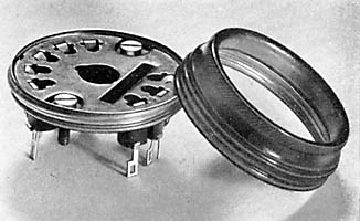 Die Stahlröhrenfassung bestand aus Bakelit, in den gebogene Blattfedern eingesetzt waren. Die Sockelstifte der Röhre waren kreisförmig in Gruppen zu 3 (5) und 5 Stiften angeordnet. Jeder Stift war gekelcht, so daß die Röhre mit Hilfe der Federn einrastete. Das Einsetzen wurde durch einen Führungsstift mit Nase erleichtert. Die Stahlröhren besaßen in der Fassung und im Sockel einen Schlitz, durch den ein zusätzliches Abschirmblech montiert werden konnte.
