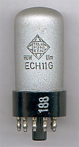 ECH 11 G: Telefunken Ulm um 1950. Die Zinkmetallisierung ist so dick, daß die Röhre deutlich schwerer ist als eine Stahlröhre. |