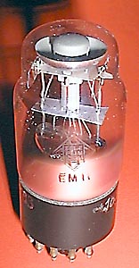 EM 11, ab 1939. Abstimmanzeige mit zwei Doppelfächern unterschiedlicher Empfindlichkeit für Rundfunkempfänger. Durch das neue Doppelsystem war die genaue Abstimmung auf Fern- oder Ortssender in gleicher Weise möglich. Heizung: 6,3 V und 0,2 A indirekt Leuchtschirm- und Betriebsspannung: 250 V Schirmbild: |
