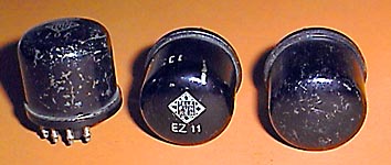 EZ 11, ab 1939. Nachfolger der EZ 1 Zweiweg-Netzgleichrichter für Rundfunkempfänger. Besonders geeignet für Autoempfänger. Um die erforderliche Anodenspannung zu erzeugen wurde die Batteriespannung mit einem mechanischen Zerhacker in Wechselstrom umgewandelt, der dann transformiert wurde. Anschließend erfolgte dann die Gleichrichtung mit dieser Röhre. Heizung: 6,3 V und 0,29 A indirekt Anodenspannung: 2×250 V |