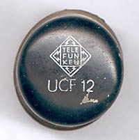 UCF 12, seit 1950 Misch- und Widerstandsverstärkertriode (Pendelaudion) und Hochfrequenzverstärkerpentode für UKW-Rundfunkempfänger. Diese Röhre hat einen zusätzlichen Kontaktring oberhalb der Kolbenschweißnaht und benötigt einen speziellen Stahlröhrensockel. Heizung: 20 V und 0,1 A indirekte Serienheizung. Triode: Pentode: |