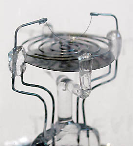 Die linke Röhre wurde nach ausgebrannten Heizfaden wieder repariert, was der zusätzliche Pumpstutzen beweist, denn Röhren waren damals sehr teuer. |