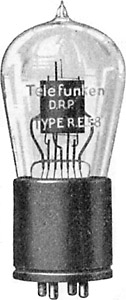 Amerikanischer 4-pin-Sockel Höhe ohne Stifte: 100...105 mm Heizung: 5 V und 1 A Ähnlich wie RE 85. Rechte Abbildung aus "Drahtlose Telegraphie" von J. Zenneck und H. Rukop, 5. Auflage 1925; Mittlere Abbildung aus "Der praktische radioamateur" von Hanns Günther und Dr. Franz Fuchs, 1924. |