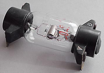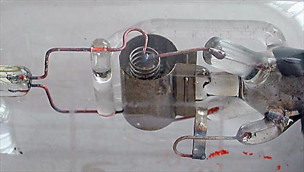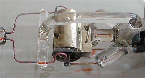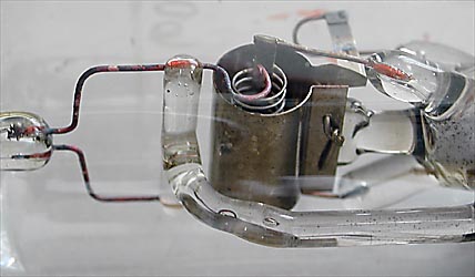 Die verwendeten Materialien waren zur Mitte des Ersten Weltkrieges noch Nickel, wie bei dieser Röhre. Spätere Röhren, wie die neu aufgelegte Nr. 80992 haben Kupferelektroden. | ![]() |