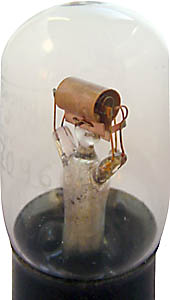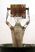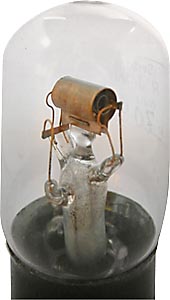 Diese Röhre ist wie die Nr. 58637 baugleich mit der EVE 173. Deutliche Spuren hat die Materialknappheit am Ende des Ersten Weltkrieges hinterlassen. Gitter und Anode bestehen aus Kupfer, der Sockel ist von minderwertigem Eisen umgeben, und es wurde sogar an den Sockelstiften gespart; statt gefederten Nickelstiften gab es nur geschlitzte Messingrohre. Vielen Dank für die Fotografien! |