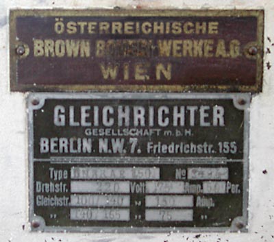 Typenschild oben: Brown-Boveri-Werke A.G.