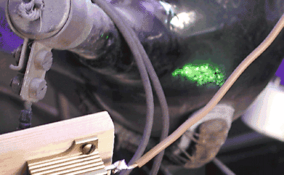 Abwechselnd leuchten die drei Arme auf, fünfzig Mal in der Sekunde. Hier ist ein Arm in Zeitlupe dargestellt. |