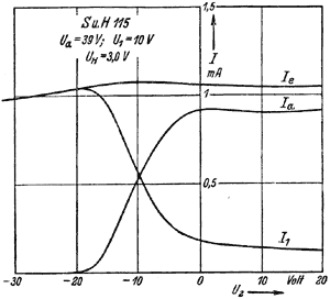 ![]() Emissionsstrom (Ie) = Anodenstrom (Ia) + Raumladegitterstrom (I1) |