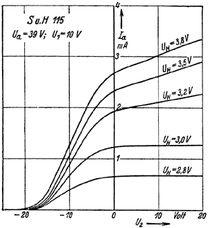 ![]() Anodenstromkennlinien bei verschiedenen Heizspannungen. |