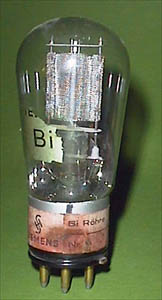 Siemens um 1940, rechts: nach 1945 Niederfrequenztriode Heizungsdaten: 4 V und 1,1 A; indirekte Heizung |