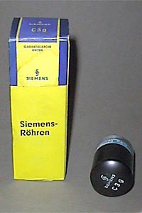 Siemens nach 1945 Hochfrequenzpentode für Breitbandverstärker Heizungsdaten: 6,3 V und 0,37 A; indirekte Heizung |