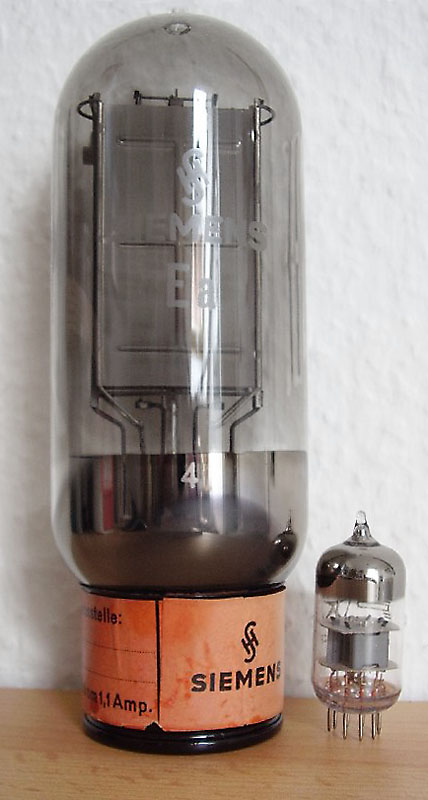 Siemens ab 1935, Foto von Peter Gaudes, Vielen Dank! Endtriode für Leistungsverstärker Heizungsdaten: 8,2 V und 1,1 A; direkte Heizung |
