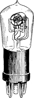 Die erste Tetrode überhaupt, mit der Walter Schottky Versuche unternahm. Wolframheizer. Ab 1917 gefertigt. Wird oft als SSI bezeichnet, es steht aber auf einer Banderole in Rot Siemens Schottky Röhre drauf, nicht SSI. Das System selbst ist möglicherweise baugleich mit der SSI, die später mit 5-poligen Poströhrensockel herauskam. Alter 5-poliger-Siemenssockel (Liebenröhrensockel mit vier Stiften und einer Buchse). Eine Röhre mit diesem Sockel habe ich als SSI noch nicht gesehen. Höhe ohne Stifte: 90 mm Heizung: 2,5...2,7 V und 0,38...0,4 A Zeichnung aus: Wireless Telegraphy, Volume II, Rupert Stanley, 1923 |