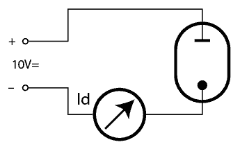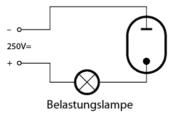 Bei der Diodenprüfung bleibt natürlich die Frage, ob die Diode oder der Gleichrihcter der vorgesehenen Sperrspannung gewachsen ist. Dazu wird eine Gleichspannung in Höhe der maximalen Sperrspannung entgegen der Diode geschaltet. Damit im Überschlagsfall nicht das Netzgerät beschädigt wird, ist eine Belastungslampe erforderlich. Eventuelle Überschläge sind auch in der Röhre gut zu sehen.