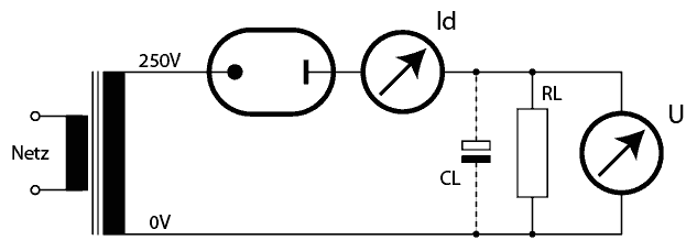 Beides in Einem lässt sich durch eine Schaltungsnachbildung prüfen und messen. Auch diese wird von den Röhrenherstellern angegeben. Es wird der Gleichrichter an einer Wechselspannung über einen lastwiderstand betrieben und Ausgangsspannung und Querstrom gemessen. Der Siebkondensator ist je nach Röhre optional dazuzuschalten.