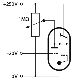 Das Anzeigesystem kann auf einem statischen Röhrenmessgerät mit einer festen Leuchtschirmspannung und einer regelbaren Steuerstabspannung geprüft werden. Sicherheitshalber sollte man aber das Steuergitter der Triode mit einer negativen Spannung sperren. Die Anzeige ist nicht identisch mit der im praktischen Betrieb. Es werden auch Leuchtschirmbereiche angesprochen, die normalerweise nicht leuchten. Daher kann die unverbrauchte Leuchtschicht an den Schirmrändern wesentlich heller leuchten als der Rest.