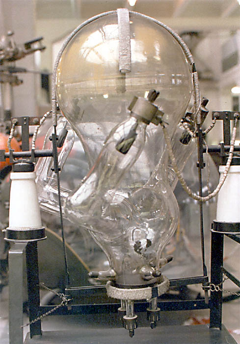 Anmerkung: Diese Art von Röhren wurden zum Gleichrichten von hohen Spannungen, aber relativ geringen Strömen verwendet. Etwa zum Betrieb von elektrischen Straßenbahnen, die mit Gleichstrom fuhren, oder für private Haushalte, die großteils Gleichspannungversorgung hatten. Die Zugspitzbahn bezog ihre Gleichspannung aus großen Glasgleichrichtern.