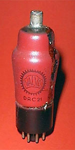 Demodulatordiode und Niederfreuquenz-Widerstandsverstärkertriode mit Oktalsockel Heizungsdaten: 1,4 V und 25 mA; direkte Batterieheizung