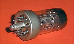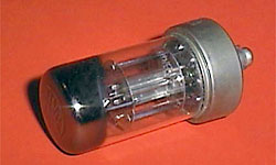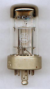 Valvo, links um 1940, rechts 1944 Niederfrequenz- und Treiberverstärkertriode mit Loktalsockel Heizungsdaten: 1,2 V und 25 mA; direkte Batterieheizung |