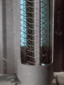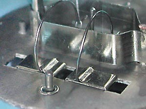 <=== Die Aufhängung des Heizfadens, isoliert auf einer Glimmerscheibe. |