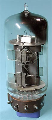 Die RL 4,8 P 15 war eine Sendepentode mit HF-Gleichrichterdiode, eine ungewöhnliche Kombination. Das Diodensystem liegt versteckt unter der unteren Glimmerscheibe.