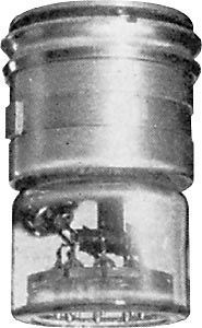 | Die RD 12 Te 1 ist eine Dezimetertriode für Kleinsender und Schwingungserzeugung mit einem Preßnapfsockel. Sie ist eine Variante der RD 12 Te, die keinen Aluminiumkopf trägt. In dem Kopf war zusätzlich eine justierbare Platte eingebaut, mit der die Kathode-Anode-Kapazität im Werk eingestellt werden konnte. Dadurch war ein einfacher Röhrenwechsel möglich, ohne die Frequenz neu abgleichen zu müssen. Der Kopf diente aber auch der Kühlung, indem er die Strahlungwärme an das Chassis abgab. Die RD 12 Te 1 konnte in geschlossenen Gehäusen verwendet werden, während ihre Schwester die Abwärme seitlich in die Umgebung abstrahlte. Die kurzen Stifte tragen direkt das System.